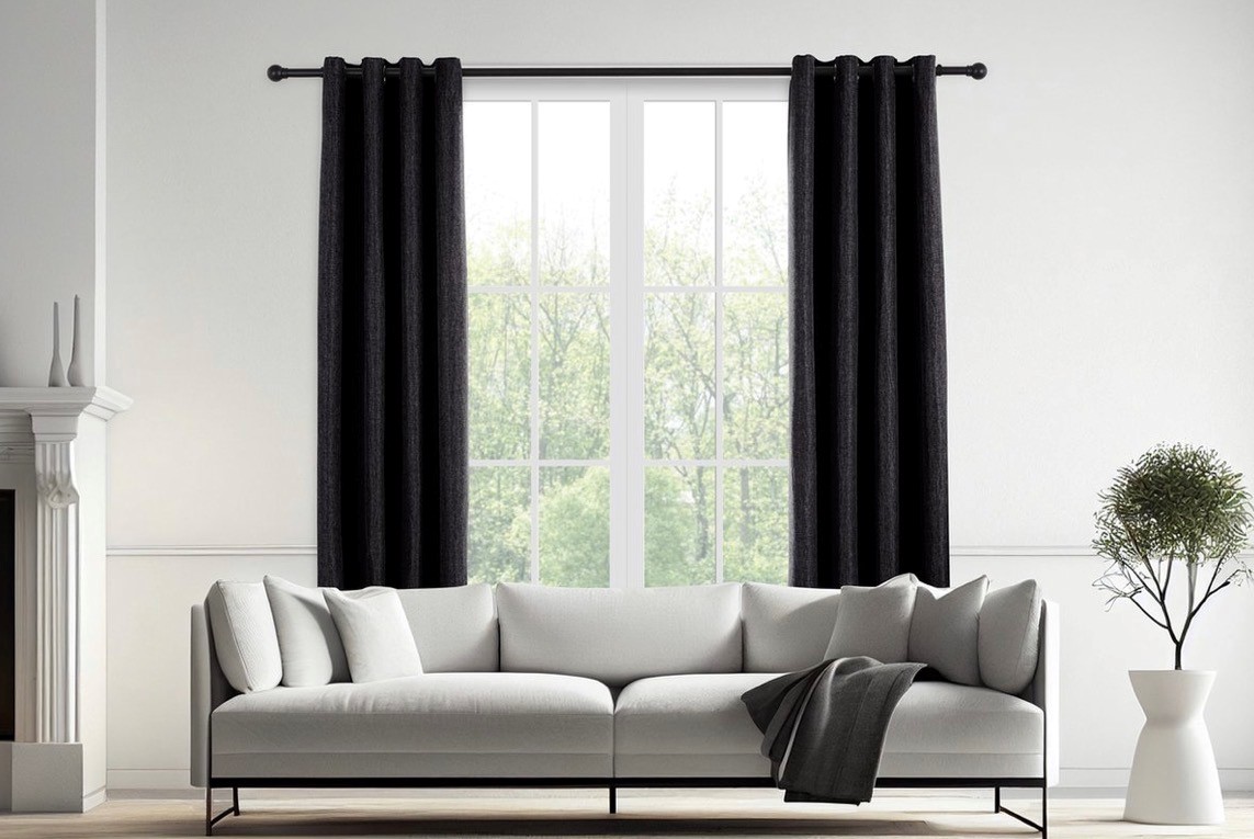 Luxe Geweven Gordijn met ringen Black 150 x 260